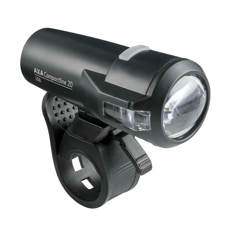 The AXA Compactline Front 20 Lux is USB rechargeable, suitable for all bikes and very easy to attach and remove with rubber straps. The battery has a lifetime of 1000 recharge cycles, making it a very good alternative to battery-powered lights. The lights work in all weathers, even in rain and snow, from -10°C in the cold to +40°C in the heat.
