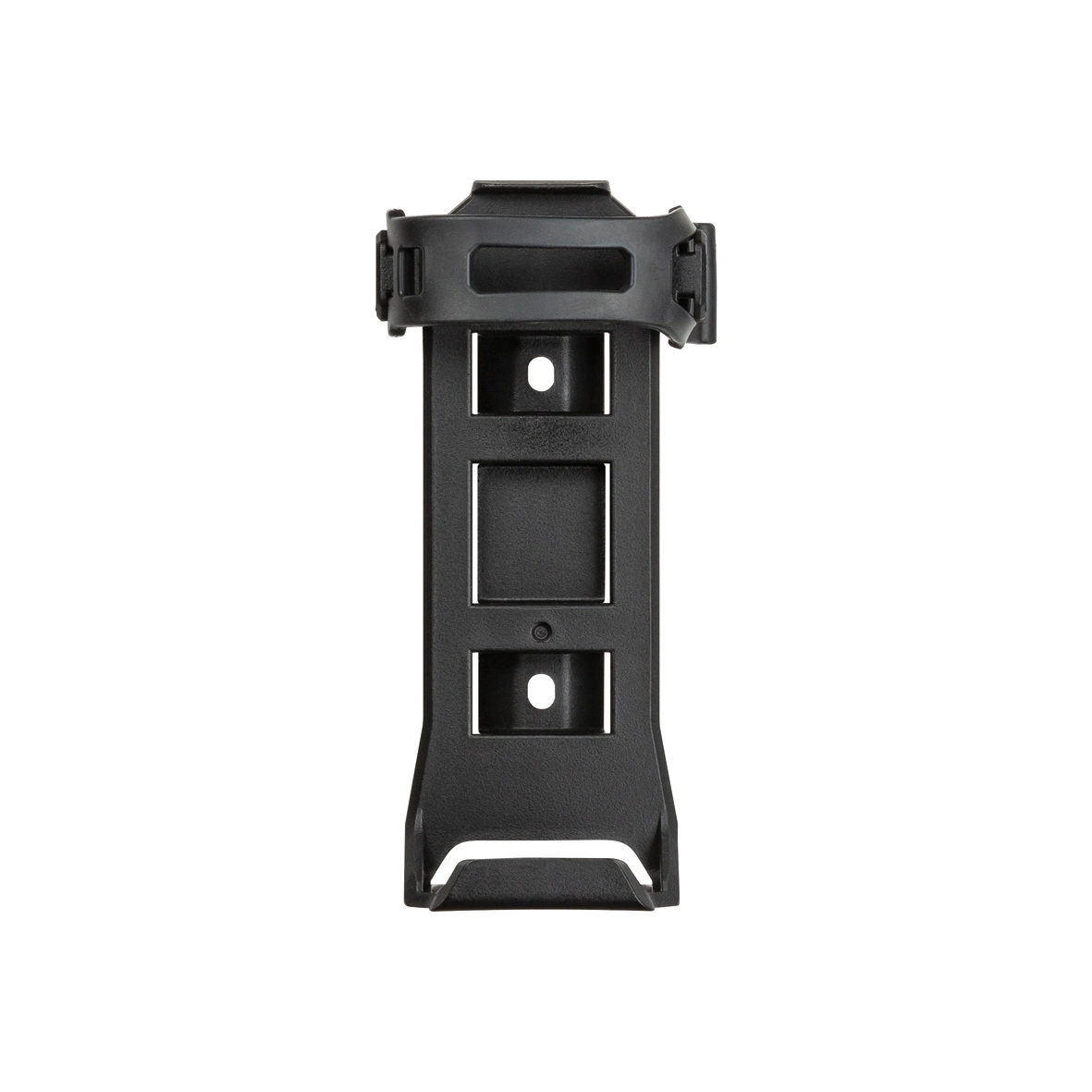 It comes with two wrenches and a holder that can be attached to the bike frame above the bottle holder or attached with the included straps.