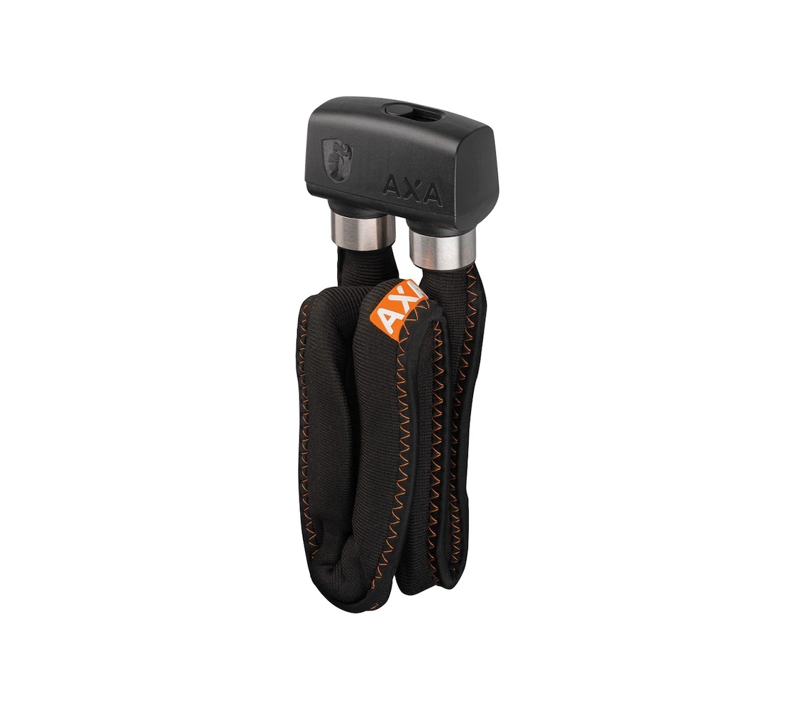 The Axa Foldable 800 is made of hardened steel, which cannot be easily “bitten through” by pliers. The total length of the lock is 95 cm and the links are encased in a durable and stretchy neoprene material to prevent accidental scratching of the wheel. It comes with two keys and a holder that can be attached to the wheel frame.