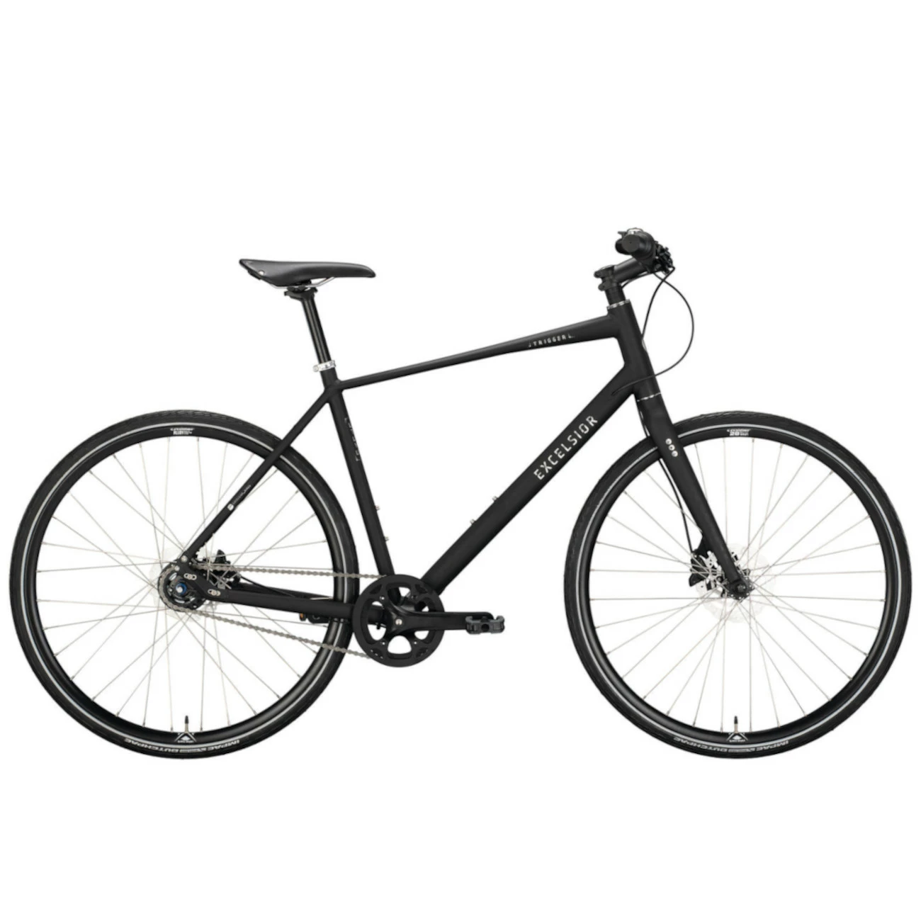 The Excelsior Trigger is designed for fast rides in the urban jungle. The Shimano Nexus shifter is stylishly hidden inside the hub. The aluminium frame makes the bike light and fast, while the rigid fork gives a good feel for negotiating corners. Nothing can stop you, except Shimano MT-200 hydraulic reliable disc brakes. But only if you want to!