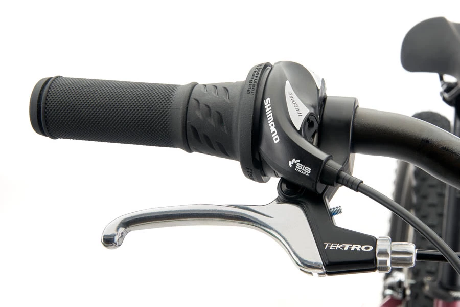 The 24-inch Kona Hula is designed for the child who is a little too tall for the 20-inch Makena, is agile and quick to learn, and is making a succession of headbutts at neighbourhood bike rallies. 2.6″ tyres for excellent grip. QR drums make it easier to use. The 1x shifting is smooth and easy, the 28-tooth cog makes cranking easy, and the kid-friendly frame shape makes the Hula the perfect bike to grow up with.