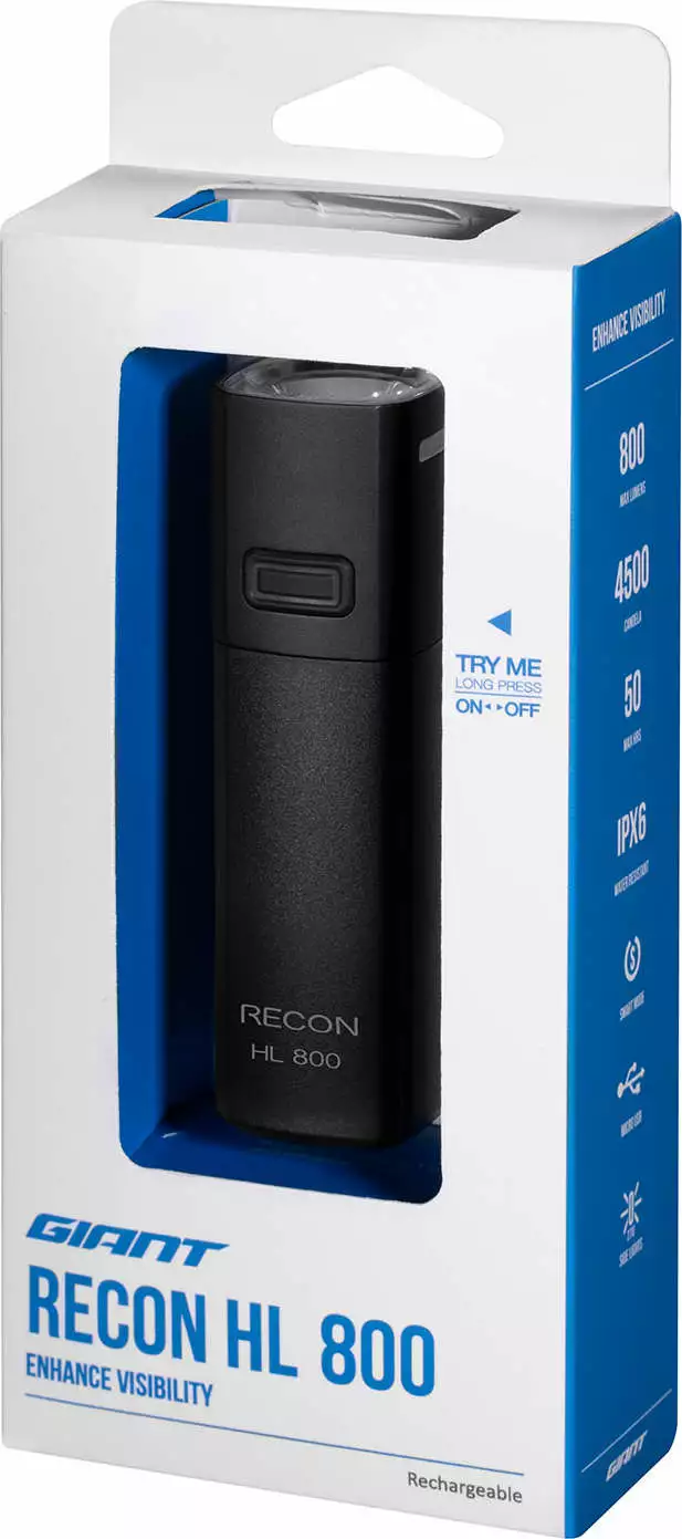 The Giant Recon HL 800 headlamp has a compact design, meets ANSI FL-1 safety standards and is waterproof (IPX6 standard – can withstand heavy rain). Can be attached to both the bike and the helmet*.