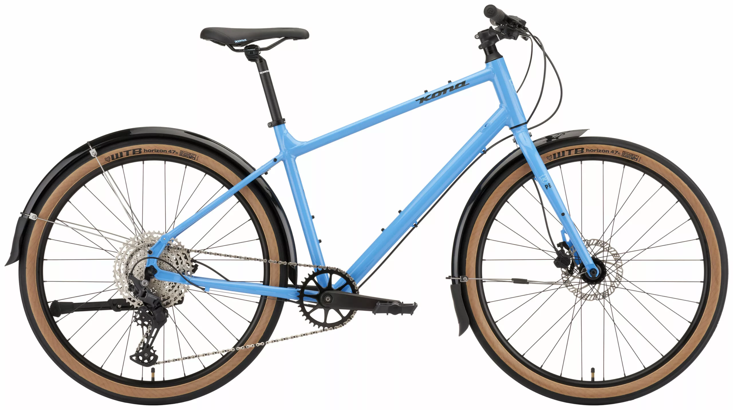 The Kona Dew Deluxe is the bike of choice for commuters worldwide. Reliable and easy to handle, the bike ensures a safe and efficient ride every time. With an upright and comfortable position, Shimano 11-speed Deore gears, hydraulic disc brakes, fast and puncture-resistant WTB Horizon Comp 650x47c tyres and a mudguard, the Dew Deluxe will get you there on time.