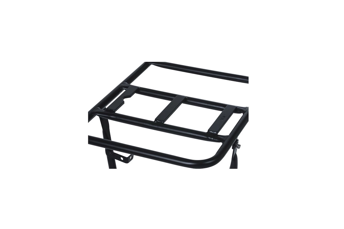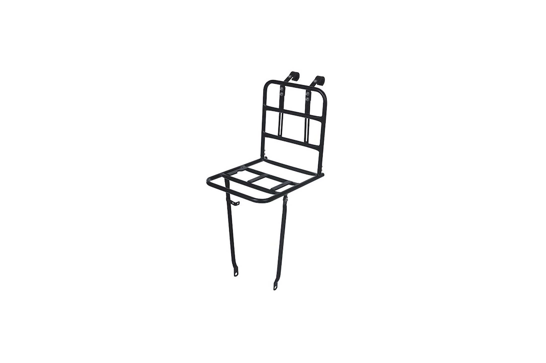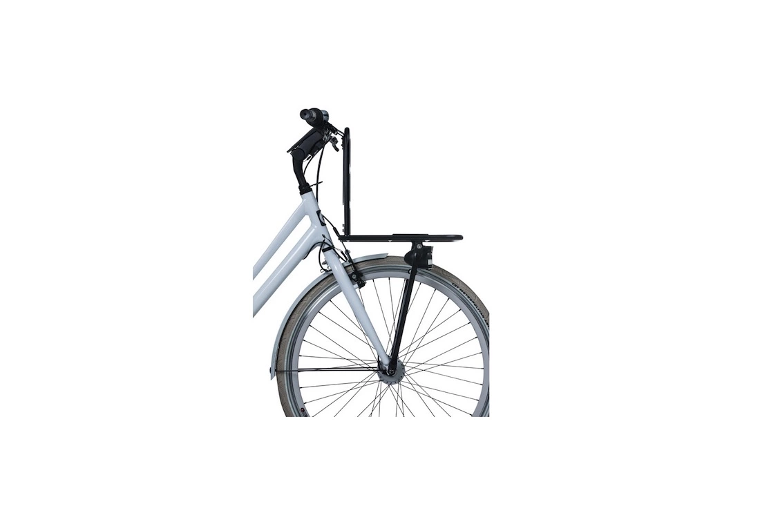 The sturdy and larger Basil front frame can carry up to 10 kg. With adjustable grips that attach to the handlebars of the wheel. There is also an attachment point for the front wheel on the rear frame.
