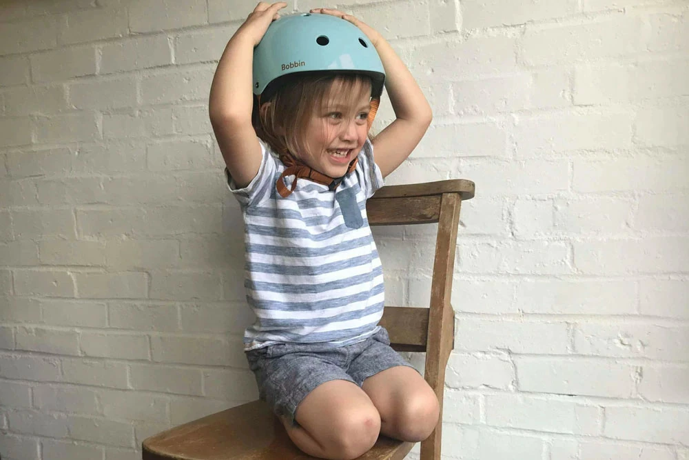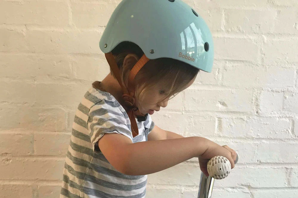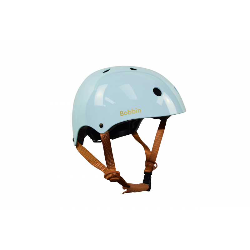 This simple, shiny BobbinStarling Duck Egg Blue helmet is adjustable inside, well ventilated and so light you won’t even notice it’s there when you ride.