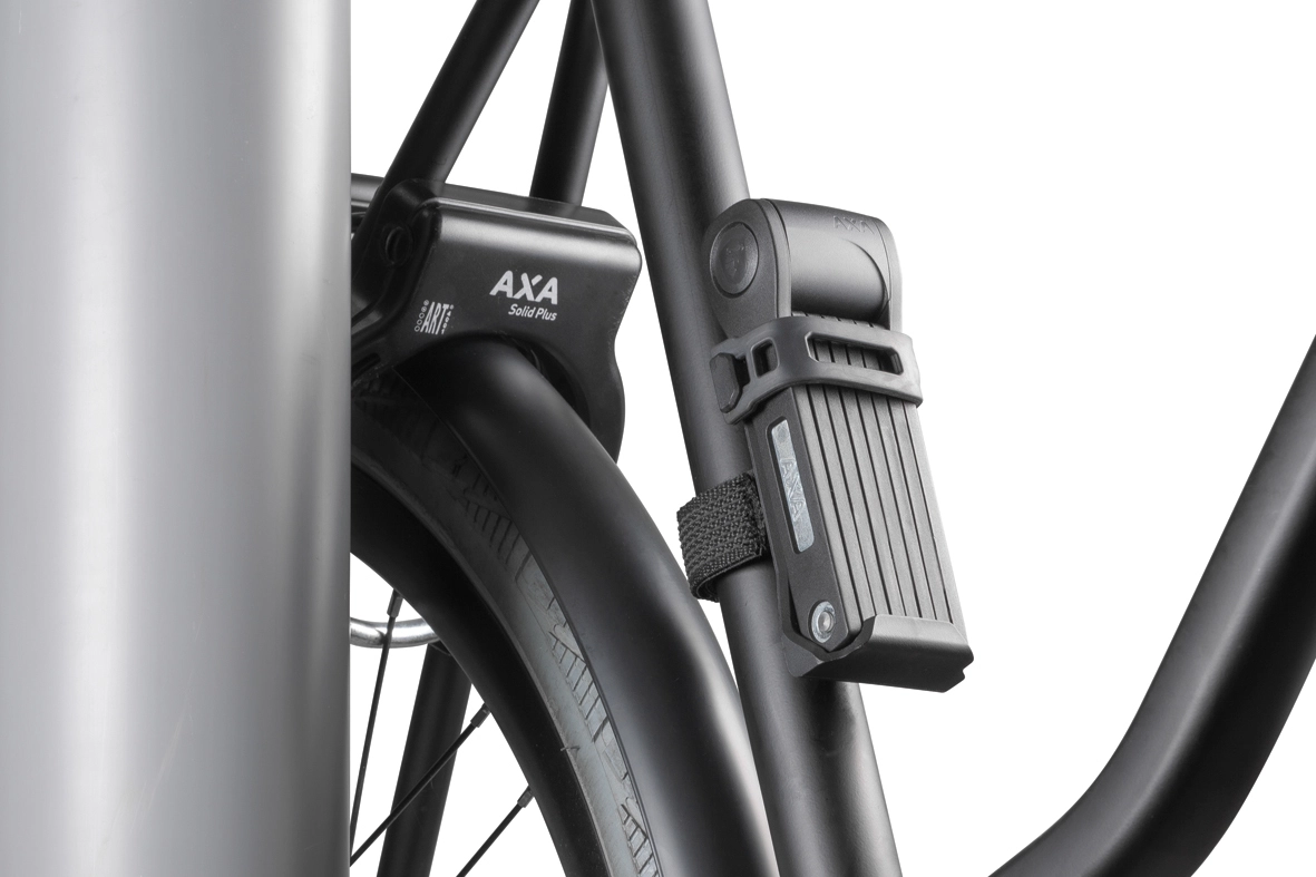 The Axa Fold Lite 80 is suitable for shorter stops or as an additional lock. The lock is made of 5 mm thick steel alloys, which cannot be easily “bitten through” by pliers. The total length of the trap is 80 cm and it is covered with a layer of rubber to avoid accidental scratching.