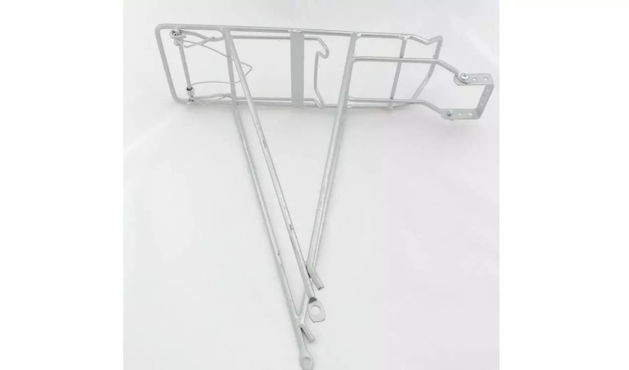 Rigidly constructed luggage rack for 28 inch wheels. The luggage rack has a strong spring clip and mounting points for a reflector or tail light.
